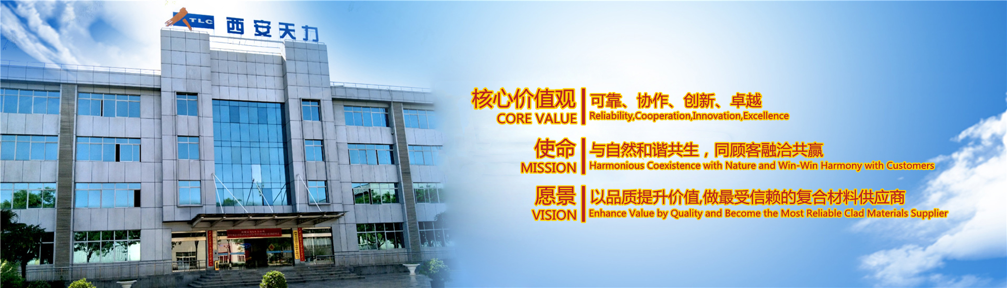 西安天力金屬復合材料股份有限公司是西北有色金屬研究院(集團)產(chǎn)業(yè)化上市公司“西部材料”控股的獨立法人公司,是專業(yè)從事層狀金屬復合材料研究及生產(chǎn)的高新技術(shù)企業(yè),成立于2003年12月25日,位于西安經(jīng)濟技術(shù)開發(fā)區(qū)涇渭工業(yè)園,注冊資本10895萬股,擁有生產(chǎn)廠房23000余平米,各類生產(chǎn)設(shè)備200余臺套及兩塊條件優(yōu)越的爆炸復合場地,形成年產(chǎn)25000噸層狀復合材料的生產(chǎn)加工能力……